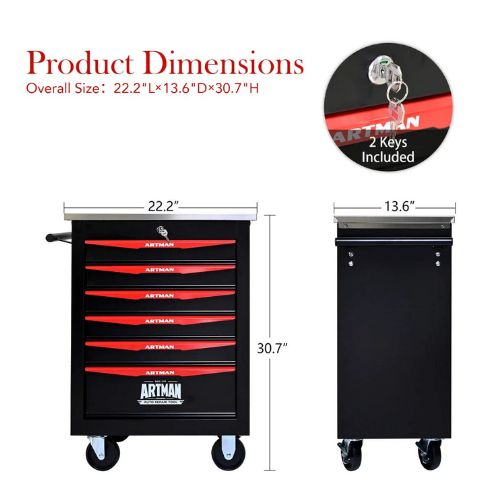Artman Gereedschapswagen met 6 Lades – Zwart/Rood